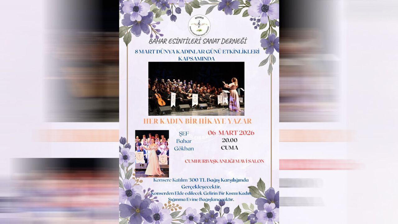 Bahar Esintileri Sanat Derneği, 'Her Kadın Bir Hikaye Yazar' konseri Cuma akşamı Cumhurbaşkanlığı Mavi Salon'da yapılacak.