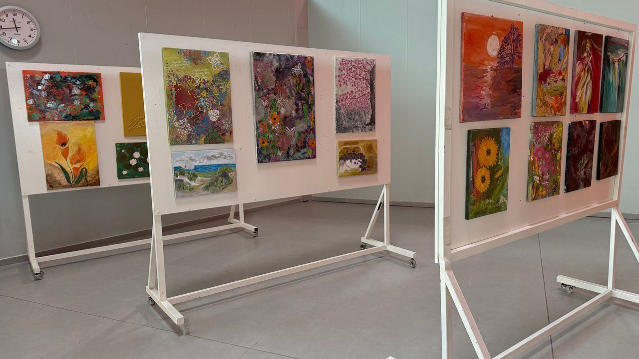 Berna Kelebek'in 'Kelebek Esintileri' resim sergisi Ercan Havalimanı'da açıldı.