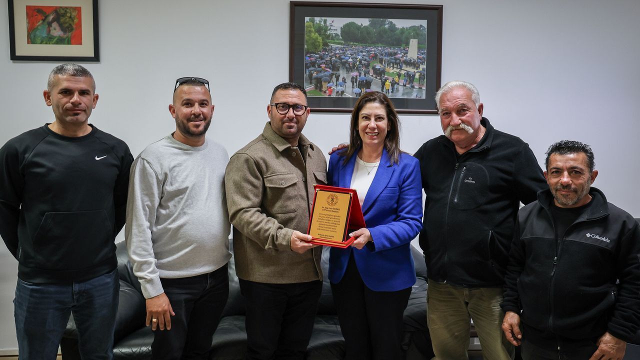Ziyaretin sonunda Kalkanlı Spor Kulübü Yönetim Kurulu, CTP Genel Başkanı Sıla Usar İncirli'ye plaket takdim etti.