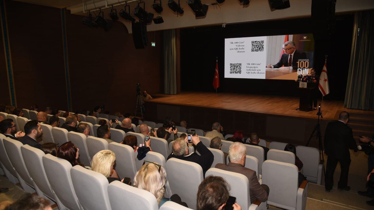 Cumhurbaşkanı Tufan Erhürman, Cumhurbaşkanlığı Beyaz Salon'da 'Cumhurbaşkanlığı'nda 100 Gün' basın toplantısı düzenledi.
