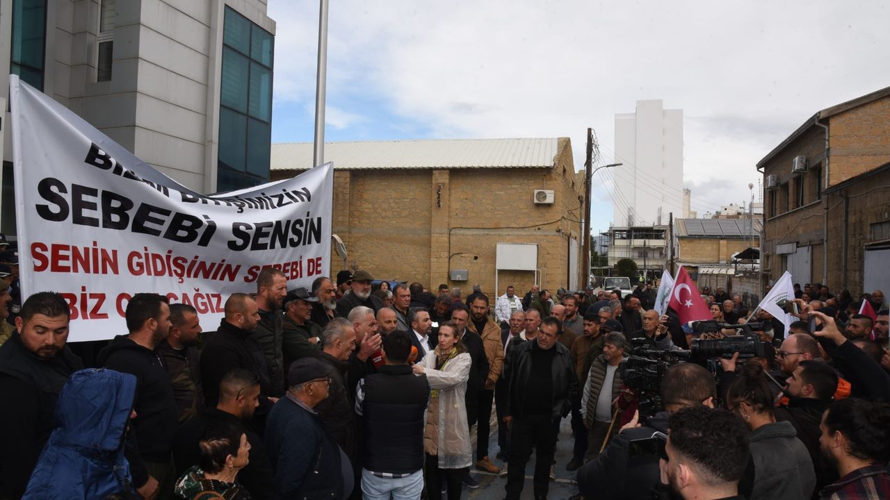 Bakanlık önünde 'Bizim bitişimizin sebebi sensin, senin gidişinin sebebi de biz olacağız a bakan' yazılı pankart açan ve 'gabak doğrayan' eylemciler, KKTC, TC ve birlik bayrakları taşıdı. Bakanlık önündeki eylemde davul zurna da çalındı.