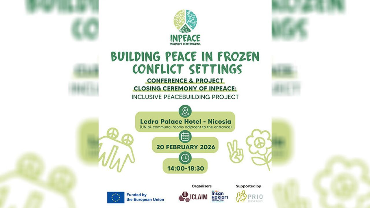 Kıbrıs Türk toplumuna yönelik Avrupa Birliği (AB) Yardım Programı kapsamında Interdisciplinary Centre for Law, Alternative and Innovative Methods (ICLAIM) ve İnsan Hakları Platformu'nun (İHP) yürüttüğü 'InPeace: Kapsayıcı Barış İnşası' adlı projenin konferans ve proje kapanış töreni yarın düzenlenecek.