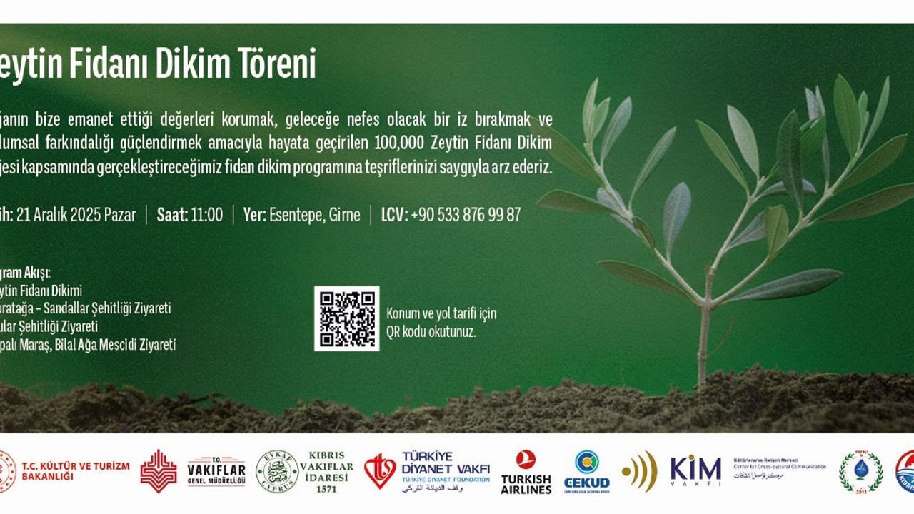 Kıbrıs Vakıflar İdaresi yarın Esentepe'de zeytin fidanı dikeceğini açıkladı. Fidan dikme töreni saat 11.00'de başlayacak. Fidan dikiminin ardından Muratağa-Sandallar ile Atlılar Şehitlikleri ve Kapalı Maraş ile Bilal Ağa Mescidi ziyaret edilecek.