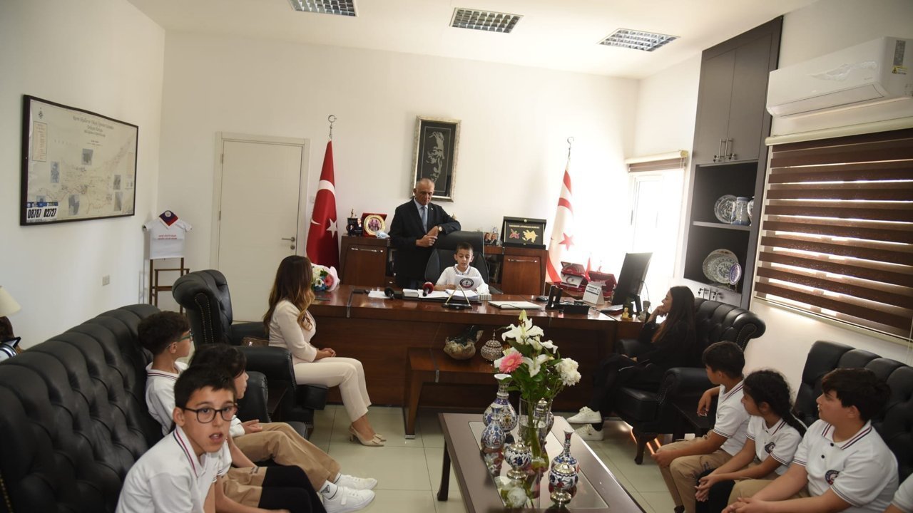 Milli Eğitim Bakanı Nazım Çavuşoğlu, 23 Nisan Ulusal Egemenlik ve Çocuk Bayramı nedeniyle Şehit Yalçın İlkokulu öğrencilerini kabul etti. Kabulde, Okul Müdürü Gönül Özal ve öğretmen Ayşe Yücel de yer aldı.