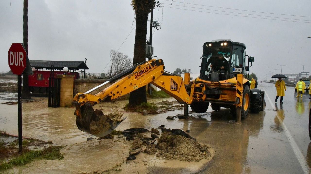 KKTC'de sağanak yağış etkili olmaya devam ediyor, ekiplerin sahadaki çalışmaları ise aralıksız sürüyor.