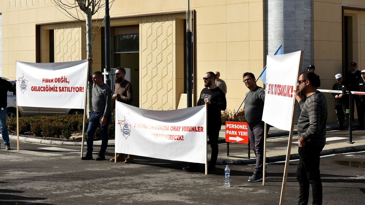 Bazı sendikalar, Türkiye Cumhuriyeti ile imzalanan Fiber Optik Protokolü'ne karşı Cumhuriyet Meclisi önünde eylem yapıyor.