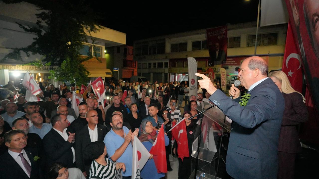 'Rum'la ortaklık isteyen, Türkiye'nin garantörlüğünün sona ermesini ve askerin çekilmesini isteyenler cevabını sandıkta alacak.Türkiye ile iyi ilişkiler ve ülkenin gelişmesi ve kalkınması için sandıklarda cevap verin. Başımız dik ve onurlu bir şekilde dünyaya KKTC, egemenlik, bağımsızlık ve Türkiye ile iyi ilişkiler kazandı mesajı verelim'